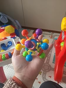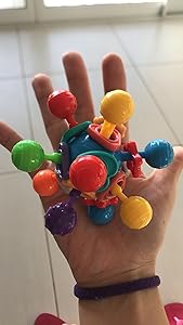 Brinquedo simplesmente maravilhoso!Facilita a pega do bebê que está aprendendo a usar as mãozinhas, o tamanho é perfeito, não é pesado, tem uma média malemolência, mini pecinhas de chocalho que fazem um barulho bem agradável, não é irritante tanto para nós adultos quanto para o bebê.Para bebês em fase de dentição também achei perfeito, dá para coçar a gengiva nessas pontinhas protuberantes.A estrutura lembra um átomo, é divertido visualmente. O barulhinho chama a atenção, se jogar no chão não quebra, dá uma leve quicada. Me atrevo a dizer que dá até para usar como brinquedo antiestresse 😅 como mostrei no vídeo dá para ficar apertando e manejando com facilidade. Vale cada centavo.Chegou bem embalado e no prazo.Compre sem medo!