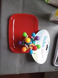 Arrisco a dizer que esse é um dos melhores brinquedos para dar de início ao bebê. Tamanho é bem compatível com as mãozinhas do bebê, muito fácil de segurar, pois os bebês de início tem muita dificuldade de usar as mãos, é bem colorido, matérial flexível, as argolinhas faz barulho como chocalho, as bolinhas são ótimas como mordedor pois tem relevo.