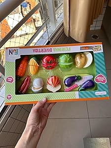 Minha bebê de 1a9m ama brincar com as frutinhas e esses legumes. Ela leva para brinquedoteca e mesmo as crianças mais velhas adoram. Ela consegue cortar bem, mesmo o velcro sendo firme. Ajuda muito na concentração e para os bebês que estão aprendendo o nome dos legumes.