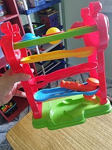 Brinquedo lindo, perfeitas cores e material, super prático de brincar. Meu filho de 2a amou, e as bolinhas são do tamanho ótimos q não oferecem risco.