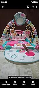 Tem uma luzinha quer gastar a pilha toda se você não desligar. Gostei do tapete e dos chocalhos porém o espelho é de plástico ruim que acaba deformando a imagem. Do mais, compensa pelo preço.